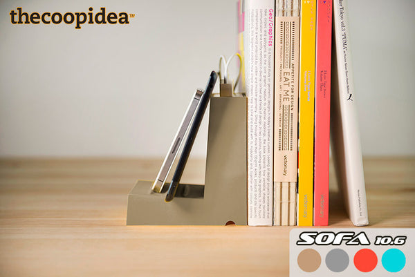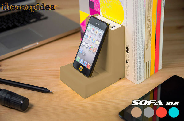 Thecoopidea Sofa 10.6A Bookend 5 USB Charging Station can charge 5 devices at the same time. With total output of 10.6A, it charges devices at max speed. It has 3 ports at 2.4A and 2 ports with SMART USB* ( 2.4A and 1A). It also serves as a tablet / smartphone stand and as book end stopper.